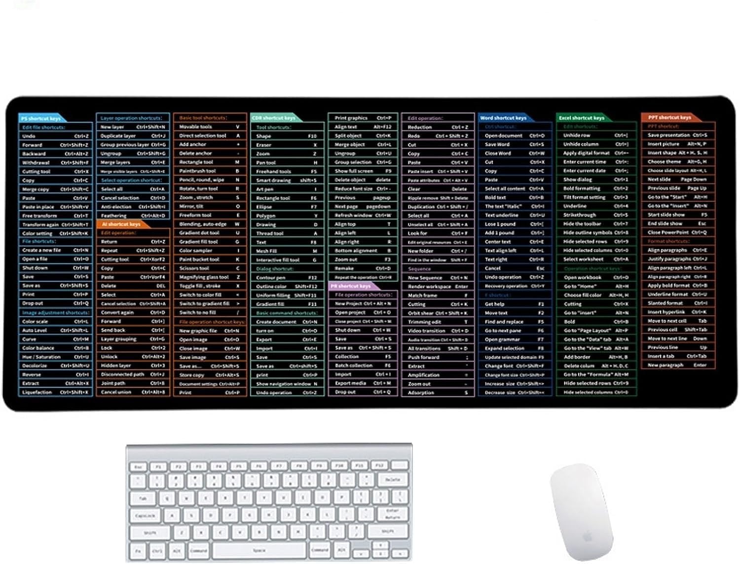 Get the Anti-slip Keyboard Pad! With clear shortcut key patterns, a super large size of 900*400 mm/800*300mm and an anti-slip bottom, you'll be typing faster and more comfortably than ever before!